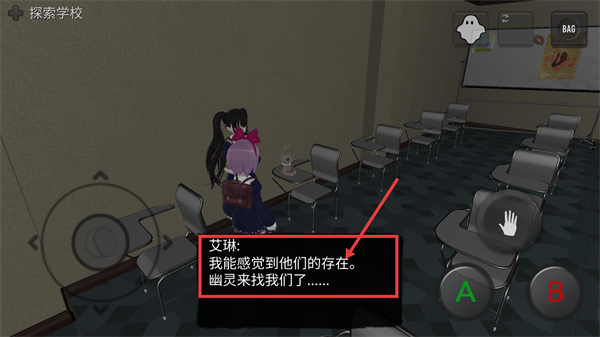 3、接收到【艾琳】的“幽灵来找我们了”提示后,留意场景变化,做好准备应对后续出现的幽灵相关事件。