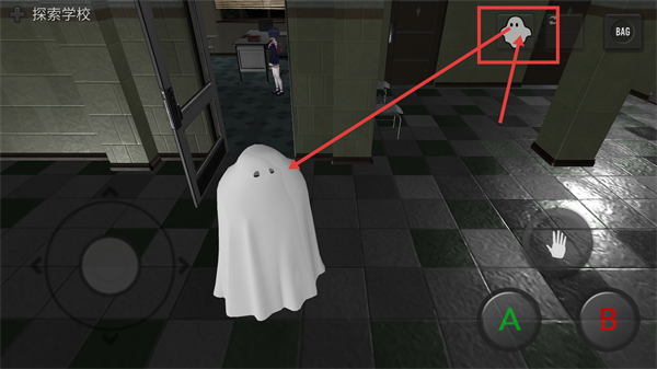 4、场景中出现【幽灵】形象时,点击界面上方的幽灵图标,完成对应互动操作,推进当前的游戏流程。