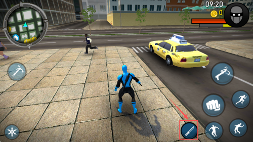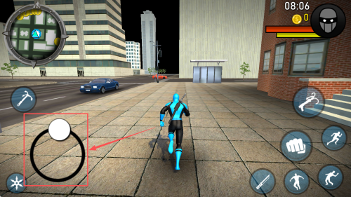 2、移动角色:使用左下角的虚拟摇杆控制角色在城市中移动。