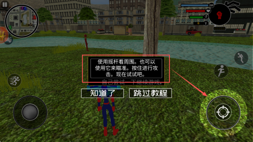 3、移动角色:使用左侧虚拟摇杆控制角色在城市中移动。