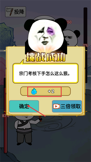 4、【挑战成功】后将获得【+2】个对应道具奖励,点击【确定】按钮即可领取奖励并结束流程。