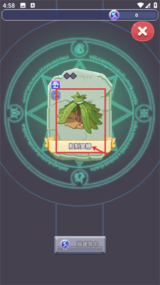 2、抽取【石器时代建筑包】后获得【粗制窝棚】建筑卡,该建筑是当前可获取的基础建筑之一。
