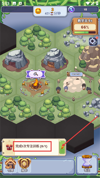 1、界面中出现【完成1次专注训练-0/1】的任务,点击对应引导可进入专注训练环节,推进任务进度的同时助力城市发展。