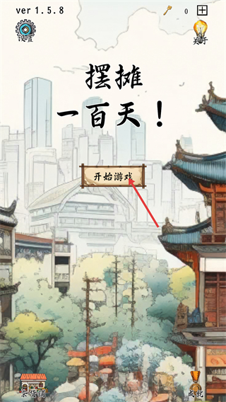 1、在当前界面点击【开始游戏】按钮,即可进入【摆摊一百天!】的游戏模式选择环节,开启后续的摆摊经营挑战。