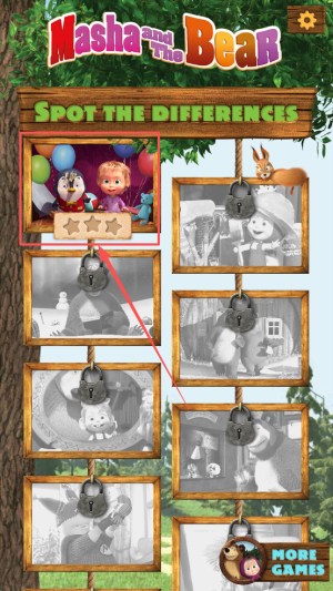 4、解锁故事图画:成功通关后,解锁更多玛莎和熊的故事图画,在找茬过程中感受角色互动乐趣,持续获得新鲜感。