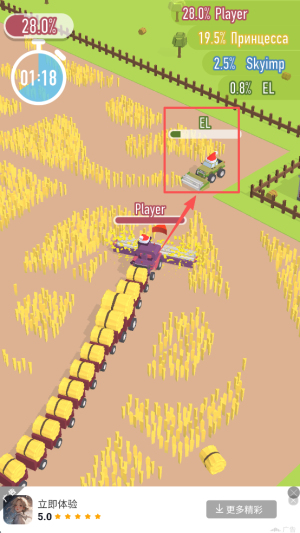 1、玩法收割对战闯关:操控收菜机收割稻草、抢占他人庄稼,积累资源争当丰收王者,每轮胜利都满是成就感,适配魔性竞技场景。