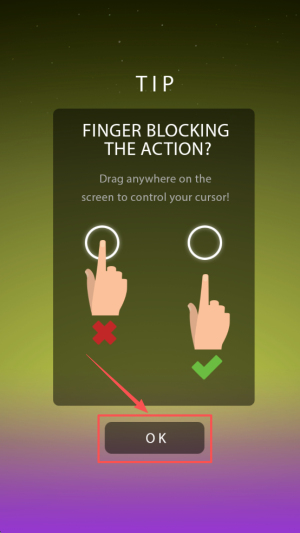3、控制光标:在FINGER BLOCKING界面拖动屏幕控制光标。