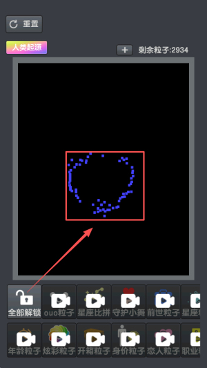 2、查看粒子:在人类起源剩余粒子2934界面点击全部解锁。
