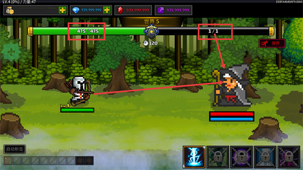 3、在【世界5】中,针对巫师类BOSS发起攻击,维持【475/475】的战斗进度,借助技能按钮提升输出效率。