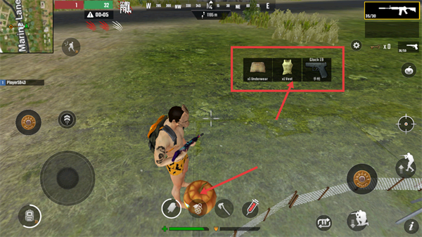 2、拾取场景内掉落的物资,装备【Glock-19-手枪】与【Vest-背心】,提升战斗与防御能力,同步收集更多资源。