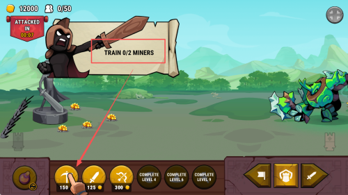 2、训练矿工:在游戏内,点击底部的矿工图标,开始训练矿工以收集资源。