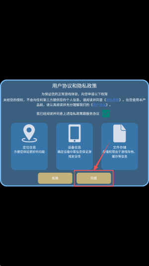 1、接受用户协议:在游戏启动时,阅读并同意用户协议和隐私政策,点击“同意”进入下一步。