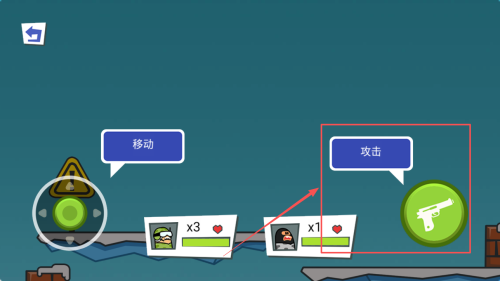 1、控制角色:使用左下角的摇杆控制角色移动,点击右侧的按钮进行攻击。