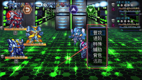 4、战斗操作:在战斗场景中,点击屏幕右侧的按钮进行攻击、进阶、特殊技能、辅助、背包和逃跑等操作。