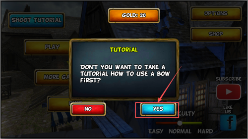 2、选择教程:在弹出的教程提示框中,选择“YES”开始教程学习。