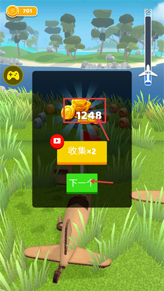 4、完成阶段后获得【1248】金币,可点击【收集×2】按钮拿双倍奖励,之后点【下一个】按钮进入后续游戏环节。