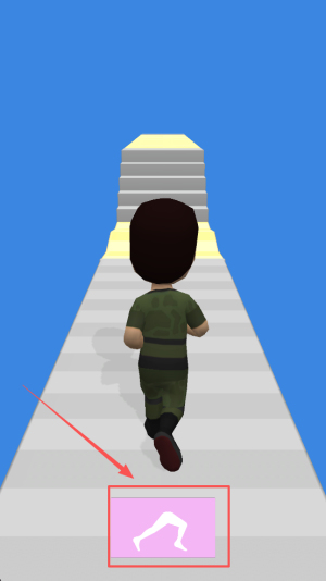 2、操控小人冲刺:通过简单操作控制小人在 3D 场景中奔跑,保持节奏避开潜在阻碍,稳步推进关卡。