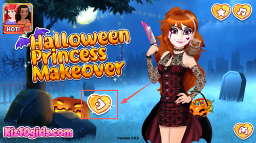 1、进入游戏:在HALLOWEEN PRINCESS MAKEOVER界面点击PLAY。
