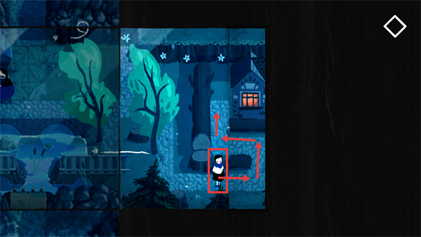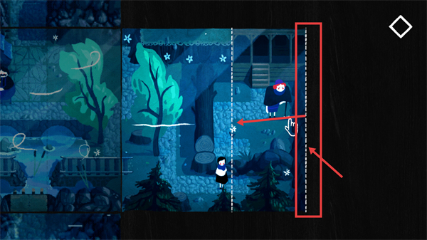 2、进入分屏解谜场景,需滑动右侧分屏区域来调整画面拼接,让角色可向目标方向移动,推进解谜进程。