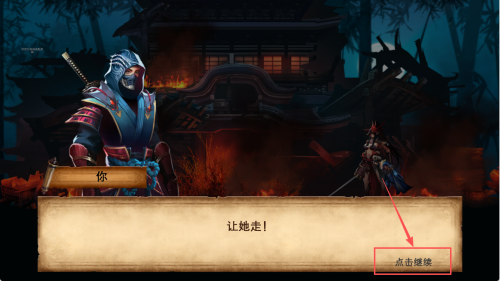 1、继续剧情:在对话选项中,选择“让她走”并点击“点击继续”以推进剧情发展。