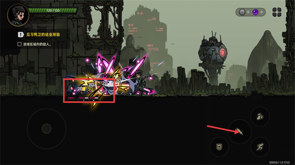 3、接取【见习鸭卫的结业测验-清理区域内的敌人】任务,点击右侧【剑图标】发动攻击,留意敌人头顶【20-30】伤害数值把控输出节奏。