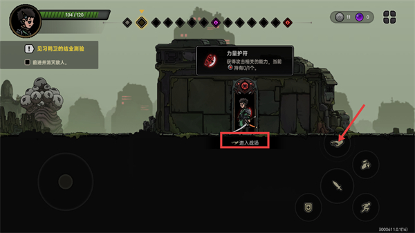 4、完成前期任务后获取【力量护符-获得攻击相关的能力】,点击【进入战场】按钮推进【见习鸭卫的结业测验-前进并消灭敌人】任务进程。