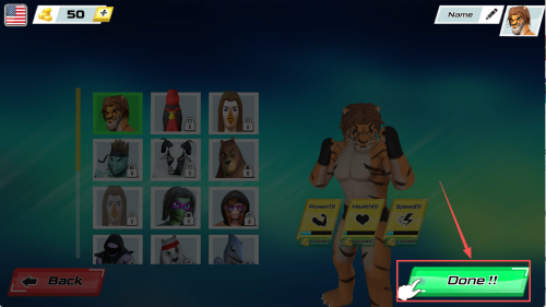2、选择角色:在角色选择界面,点击选择你喜欢的角色,然后点击“Done!!!”。