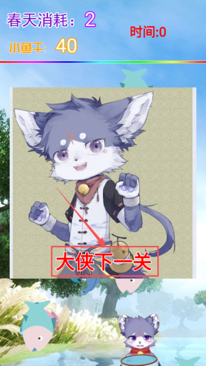 4、完成关卡:在时间0小鱼干40界面点击大侠下一关继续挑战。