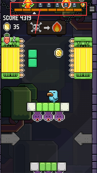 3、看到【骷髅→火焰】提示牌时,避开危险区域,可以观察上方的闯关进度。