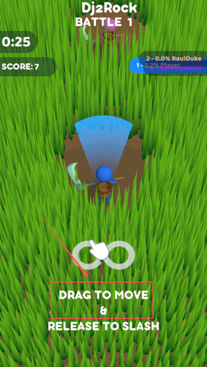 割草大乱斗轻松解压的休闲游戏,画面采用清新简约的卡通风格。玩家需在草坪上收集绿草,同时提防其他玩家的干扰与攻击。操作简单易上手,既可专注收集也可策略对抗,适合在闲暇时享受轻松愉快的互动乐趣。