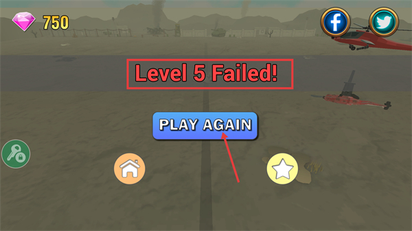 4、遭遇【Level-5-Failed】时,点击【PLAY-AGAIN】按钮重新挑战本关,可调整单位部署策略提升获胜概率。