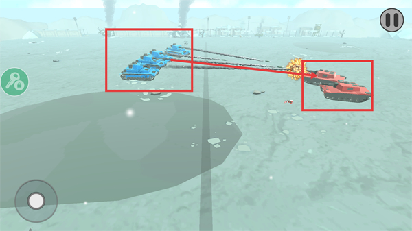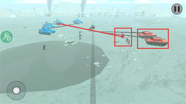3、战斗中集中已部署的蓝色坦克火力,持续攻击敌方红色坦克单位,利用集火优势快速削弱敌方战力以推进战局。