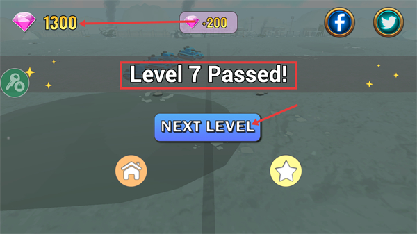 4、达成【Level-7-Passed】后,可获得+200-钻石奖励,点击【NEXT-LEVEL】按钮进入下一关,继续解锁关卡内容。
