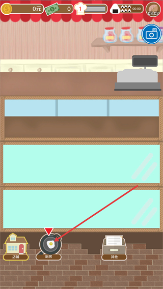 1、点击底部【厨房】按钮进入烹饪界面,当前资源为0元-0货币,准备开启菜品制作,留意界面内的功能模块与进度提示。