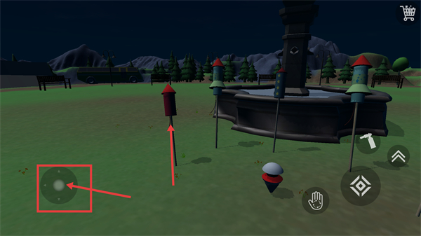1、操控【移动按钮】向场景内的红色烟花位置移动,靠近目标以准备后续的互动操作,推进当前环节的进程。
