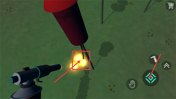 3、使用已对准的【喷枪】工具,点燃红色烟花的引线,触发烟花的燃放流程,留意操作后的效果反馈。