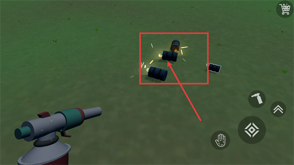 2、操控工具靠近蓝色炸药堆,切换【喷枪】工具对准该目标,完成工具匹配,为后续点燃操作做准备。