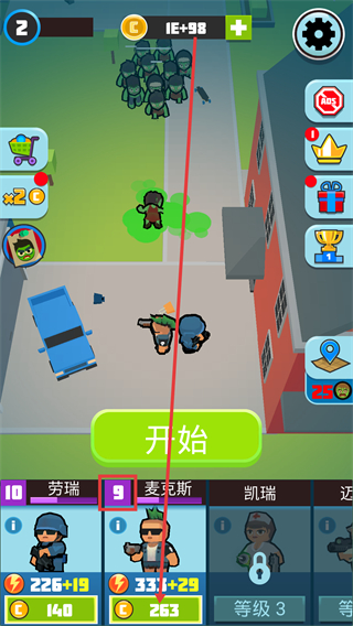 1、选定已解锁的角色,利用拥有的金币升级麦克斯的等级,确认配置后点击【开始】按钮,进入当前游戏关卡。