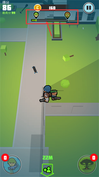 2、对局中关注得分-最高分-86-99的差距,收集场景道具如滑板,留意头像进度条状态,积累160-金币并推进至22-M助力对局。