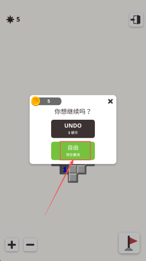 4、继续挑战:在5 X你想继续吗?界面点击自由继续。