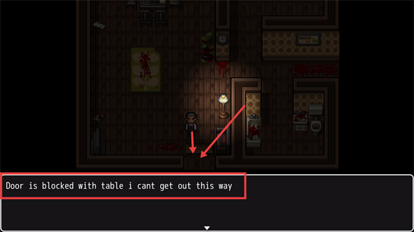 1、遇到【Door-is-blocked-with-table-i-cant-get-out-this-way】提示时,放弃当前门,转向探索房间其他区域寻找出口。