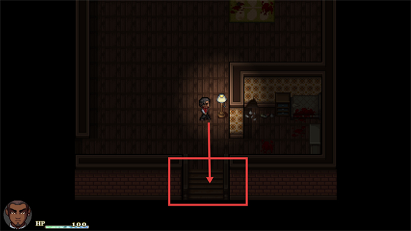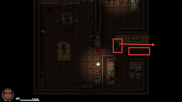 2、移动到标记的血迹区域,优先检查该区域的可交互物品,获取能推进剧情的关键线索或道具。