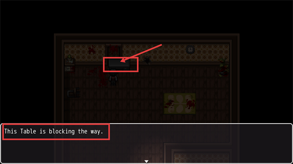 3、看到【This-Table-is-blocking-the-way】提示后,暂避被挡路径,探索房间找可移开障碍的道具。