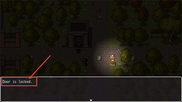 2、遇到【Door-is-locked】提示时,放弃当前门,转向探索场景其他区域,寻找开锁道具或替代路径推进流程。