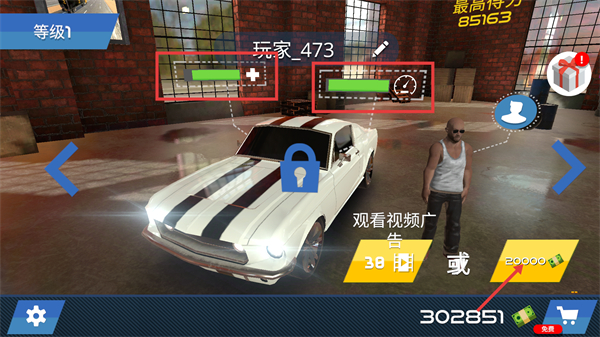 1、等级1界面下,关注【玩家_473】,锁定车辆可通过观看视频广告-30或消耗20000-货币解锁。