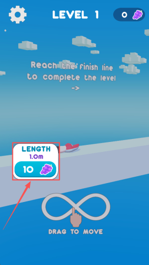 2、持续前进:在LEVEL 3 LENGTH 1.0m界面继续拖动。