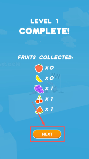 4、领取奖励:在LEVEL 1 COMPLETE!界面点击NEXT继续。