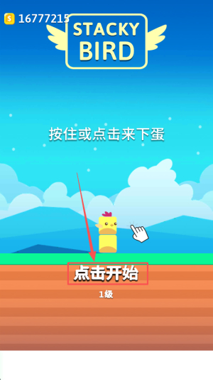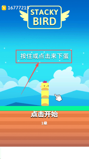 2、开始下蛋:在1级界面按住或点击来下蛋堆叠。