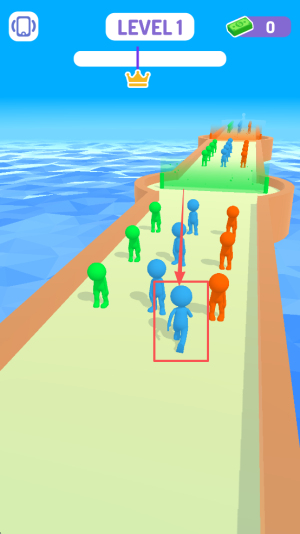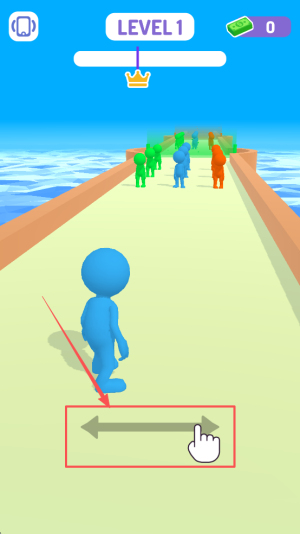 1、开启跑酷准备:熟悉滑动操控小人的操作逻辑,掌握同色橡皮人吞噬技巧,明确 “不断壮大、突破关卡” 的核心目标。