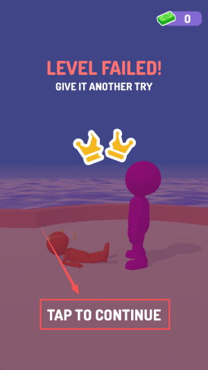 4、失败重试:在LEVELFAILED!界面点击TAP TO CONTINUE重新挑战。